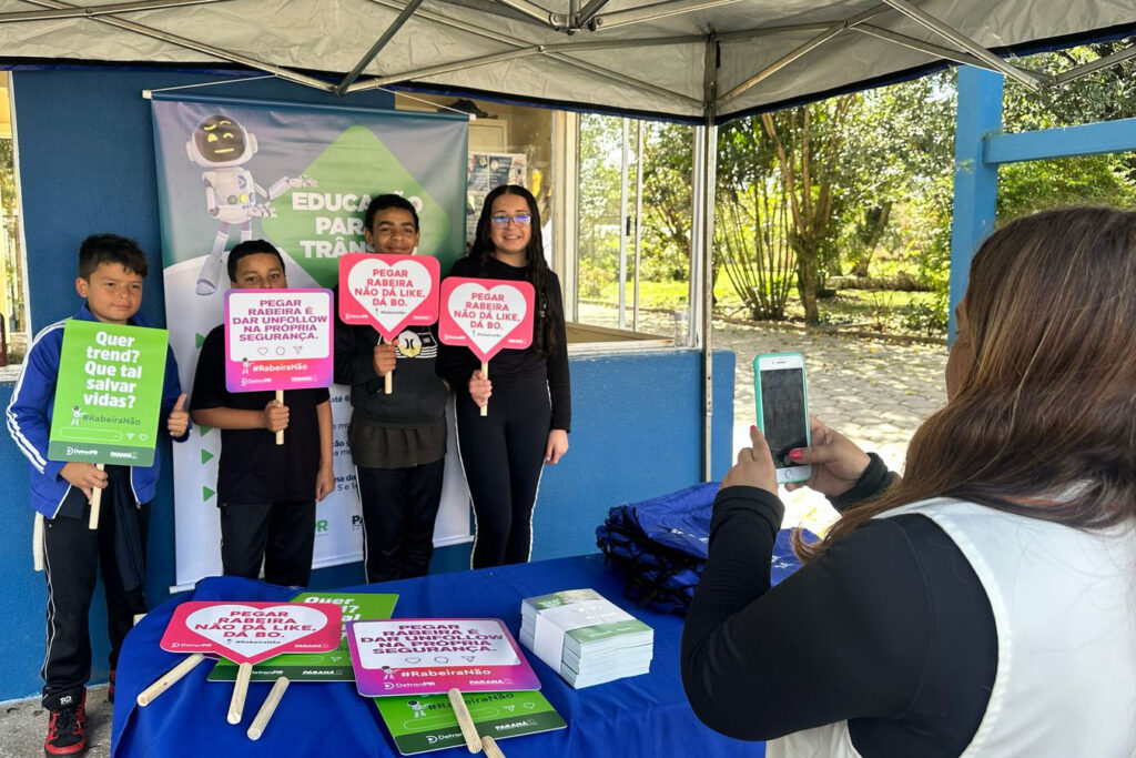 As ações não se limitaram aos estudantes: pais, responsáveis e motoristas também foram abordados, reforçando que o bom exemplo no trânsito começa em casa. De acordo com Breno Ferreira, coordenador do Departamento Executivo de Escola Pública de Trânsito do Detran-PR, os jovens têm um papel importante na construção de um trânsito mais seguro, especialmente aqueles que se deslocam sozinhos ou em grupos. “Eles precisam ser protagonistas, adotando atitudes conscientes e evitando práticas perigosas, como pegar rabeira em ônibus biarticulados”, alertou.