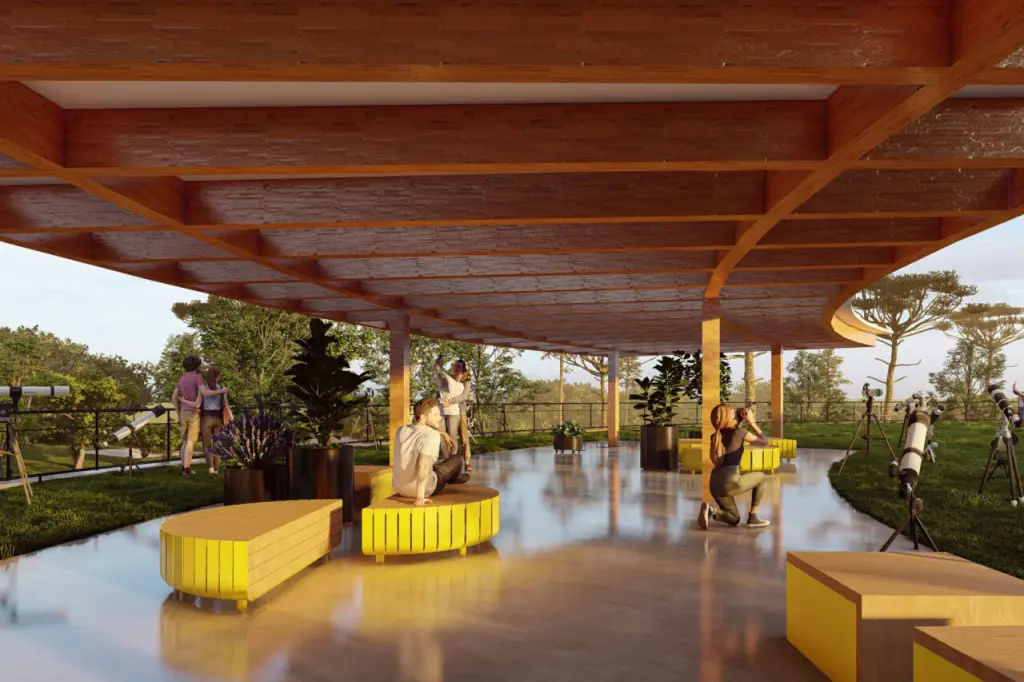 O projeto arquitetônico, escolhido por concurso público, foi desenvolvido para ser sustentável, com o uso de madeira engenheirada. O desenho se inspira no movimento dos corpos celestes, replicando a dinâmica do universo.